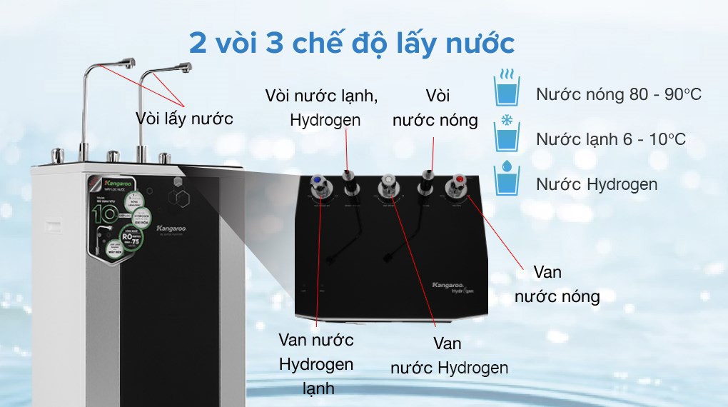 Thông số kỹ thuật Máy lọc nước R.O nóng nguội lạnh Hydrogen Kangaroo KG10A4VTU 10 lõi :